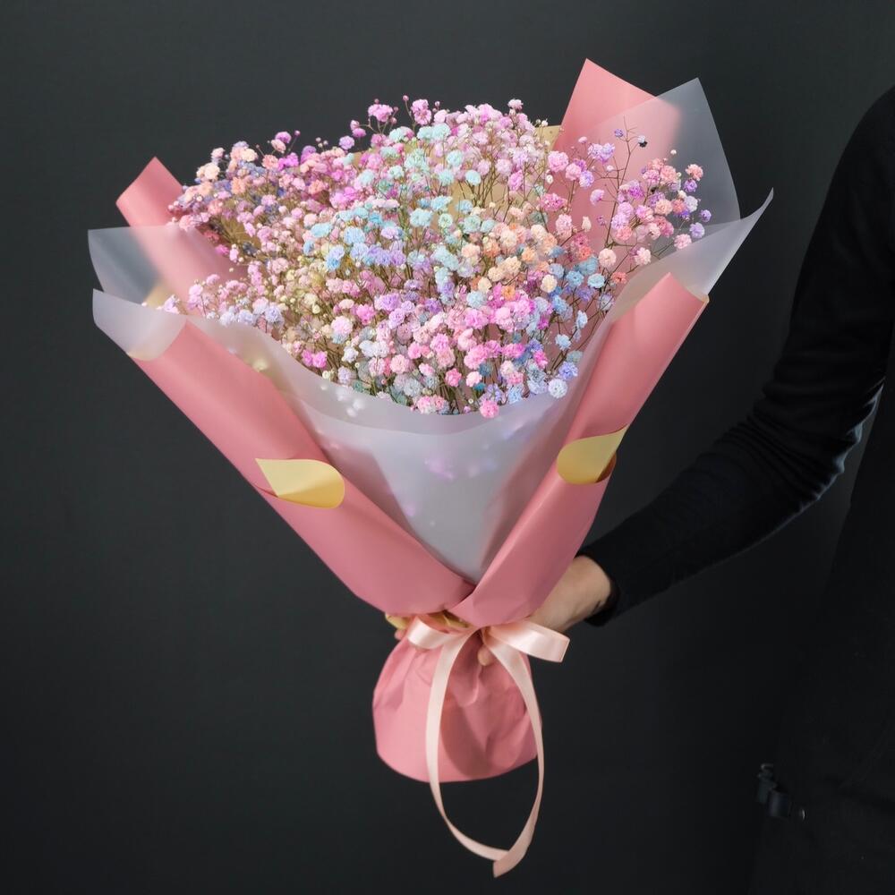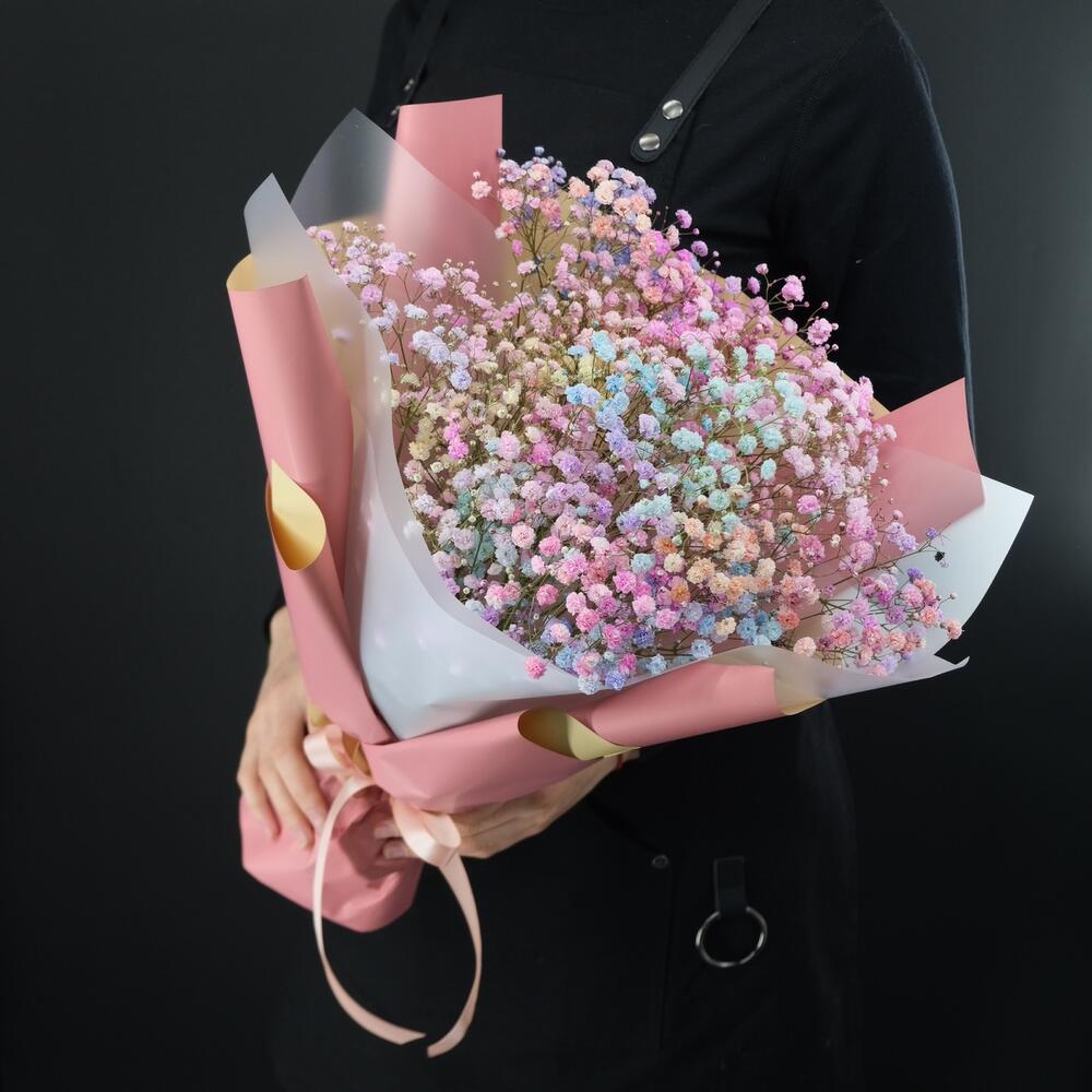 Монобукет из радужной гипсофилы в упаковке в корейском стиле 🫰🏻🌈